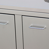 Diese Arbeitsplatten- Unterschrankkombination ist komplett aus Edelstahlblech gefertigt. Der zweitürige Unterschrank bietet genügend Stauraum für Zubehör und Behandlungsutensilien.
